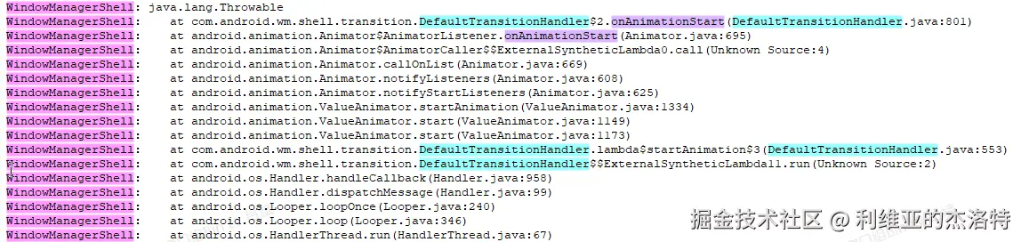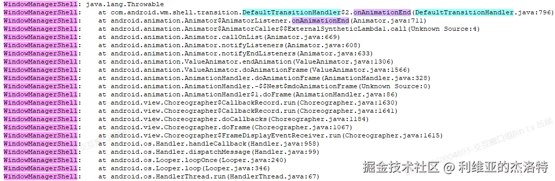 现在再回看分析TransitionPlayerImpl.onTransitionReady时我提到的,如果SystemUI主线程卡顿,那么从Binder线程切换到主线程就需要非常多的时间,也就是动画流程被延迟了,那么这也将极大的延迟”start transaction“被应用的时间,导致”start transaction“的内容无法被及时提交到SurfaceFlinger。