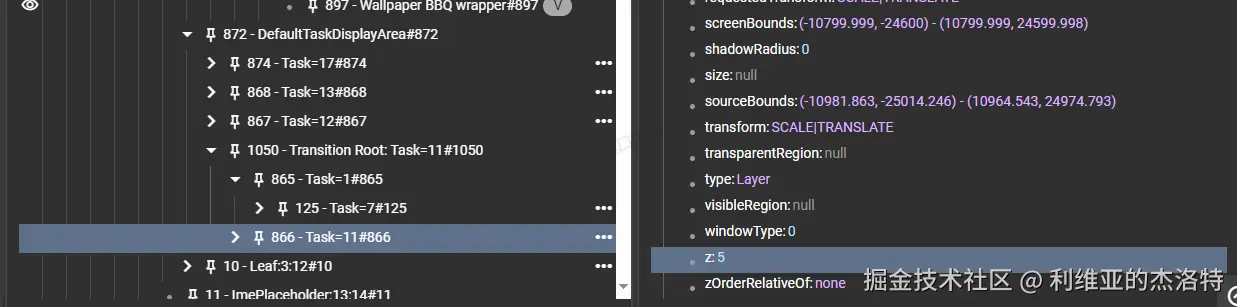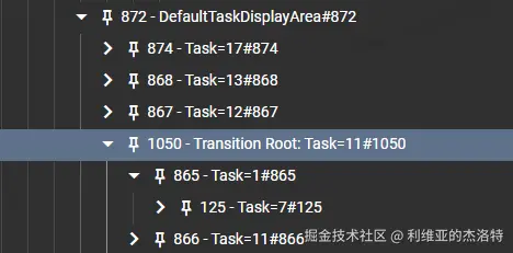 能看到在TaskDisplayArea下创建了一个名为“Transition Root:......”的Layer,作为动画参与者的共同parent。