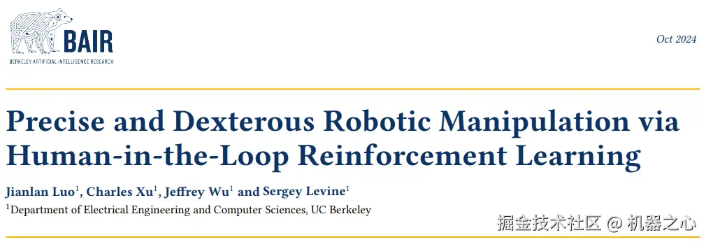 论文标题:Precise and Dexterous Robotic Manipulation via Human-in-the-Loop Reinforcement Learning