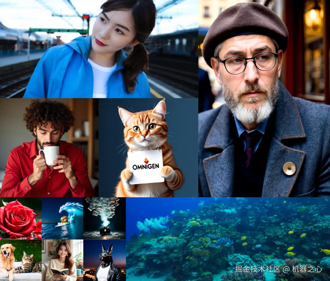 为解决这一挑战性问题,智源发布了统一图像生成模型 OmniGen。OmniGen 模型具有良好的简洁性和易用性,集成了多种基础图像生成任务,包括但不限于:文生图、图像编辑、角色一致性生成、基于视觉条件的生成等。OmniGen 支持基于任意多模态的文图指令完成任务,而无需任何其他额外插件和操作。