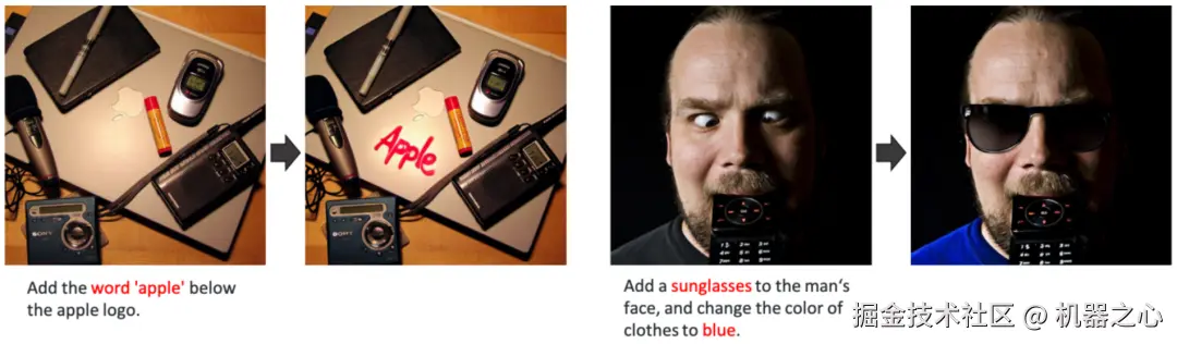 例如,要求模型删除图中能装水的物品,则模型能够理解和推断出指令涉及的图中物体并删除: