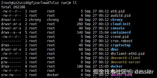 可以看出来速度差距很大,可以把我们那些临时文件并且对速度有要求的都可以放置在这里。从下面目录和文件也可以看出来,很多应用软件包括,sshd,crond,docker都会把一些pid文件和socket文件放置到该目录下。