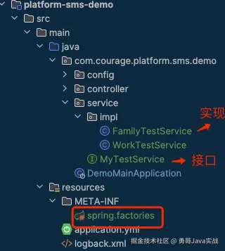 // 调用 SpringFactoriesLoader.loadFactories 方法加载 MyTestService 接口所有实现类的实例