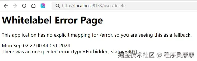 访问http://localhost:8183/user/delete和http://localhost:8183/user/delete报错。
