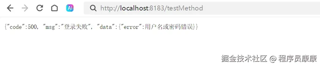 String data = "{\"code\":403, \"msg\":\"没有权限\", \"data\":{\"error\":"+accessDeniedException.getMessage()+"}}";