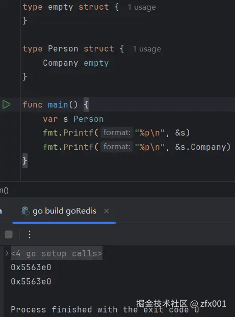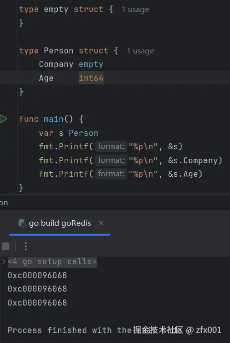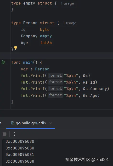 - 当有其他字段时,并且空结构体字段处于第一个字段时