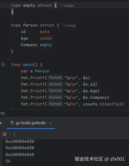 结构体本身和其字段都指向zerobase