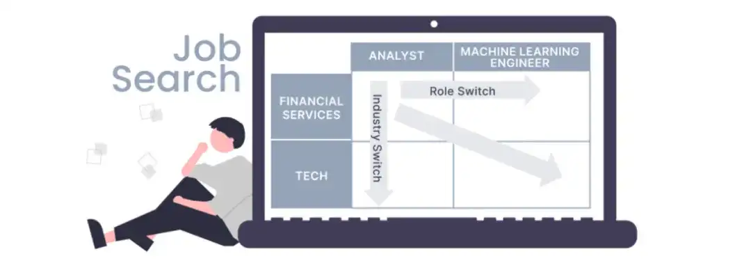 在科技初创公司担任产品经理的人,转到同一或不同公司的数据科学家岗位,就职角色发生了变化。制造业公司的一名营销人员,在科技公司担任营销人员,则跳槽了行业。金融服务业公司的分析师,在科技公司成为机器学习工程师,不仅职位变了,行业也变了。