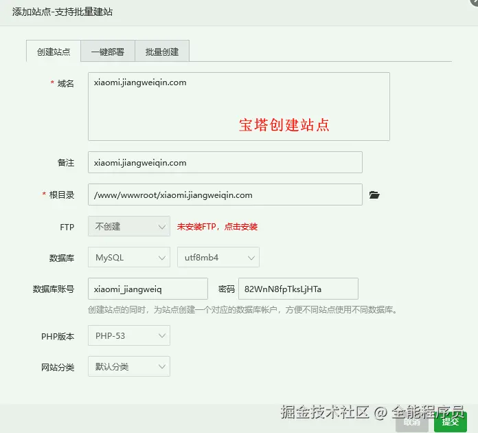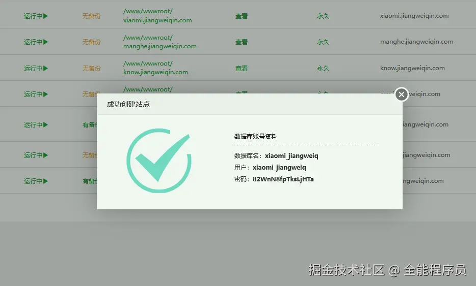 记录创建站点时创建的数据库信息
