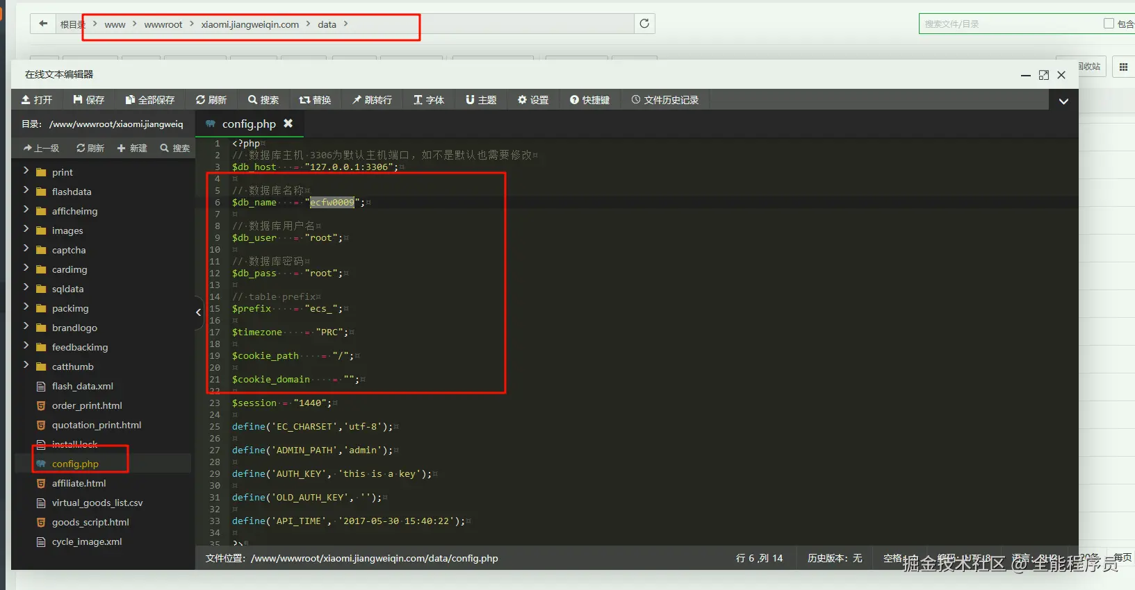配置创建站点时创建的数据库信息