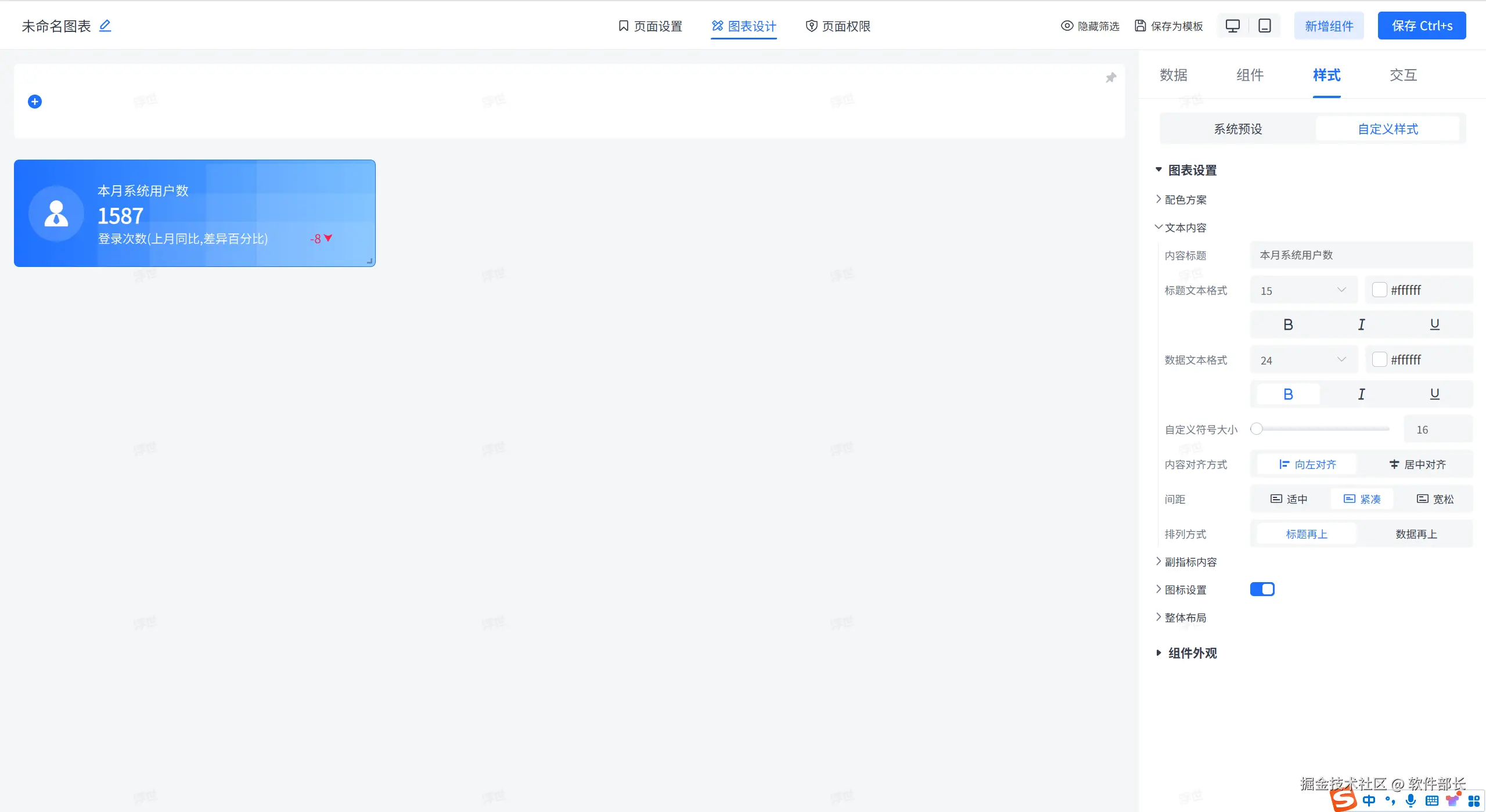 并且提供多种样式效果的设置,除了系统提供的样式以外,还支持自定义配置的扩展同环比的样式的配置