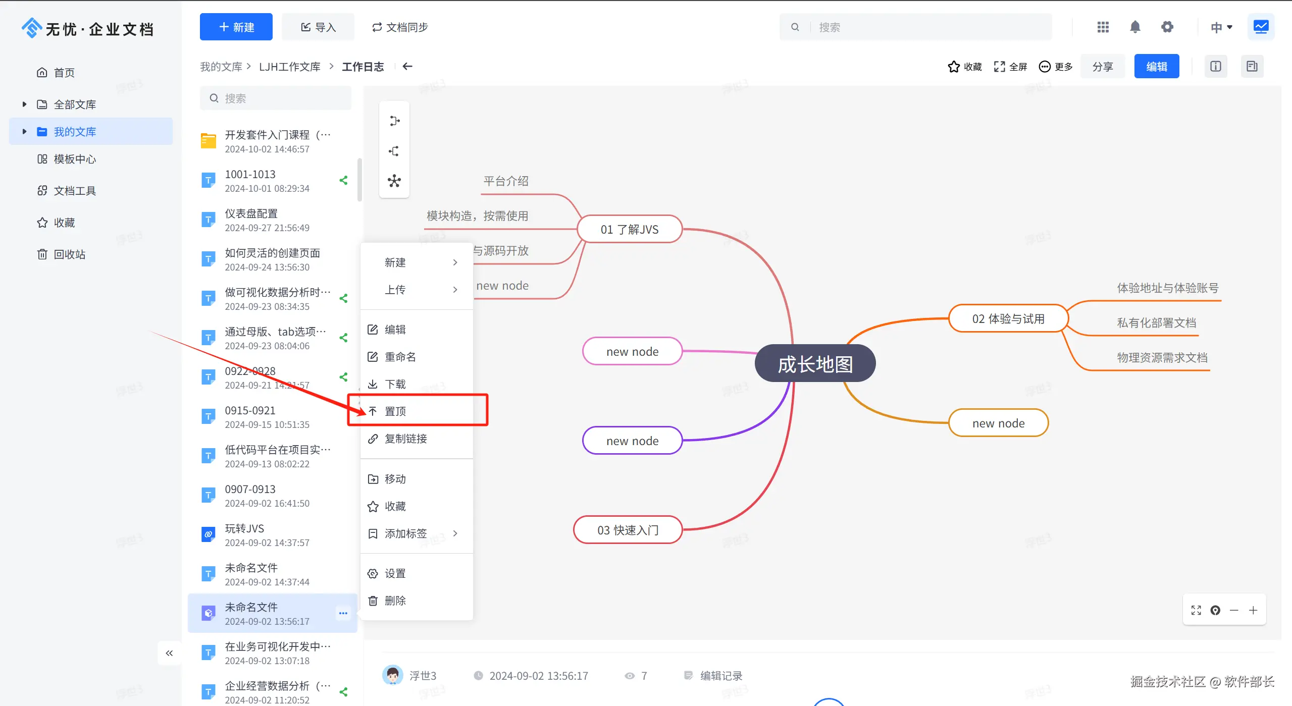 3、在文库中新增文库首页置顶的功能,用于在文库的首页中进行快捷的内容展示