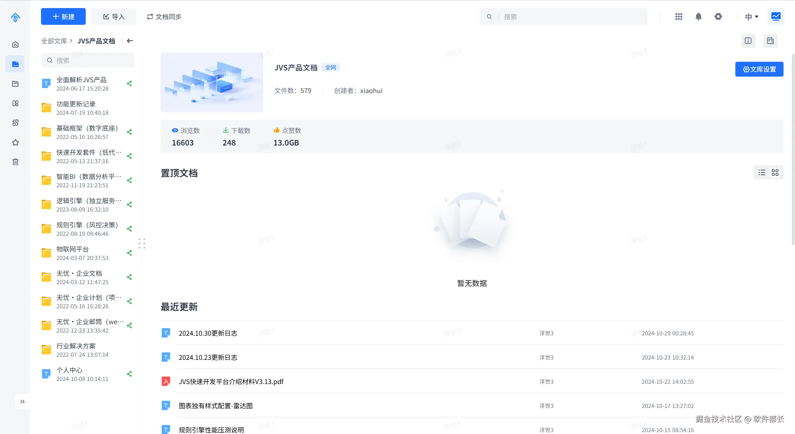 1、优化企业文档的目录操作,目录支持拖拽宽度,这里的宽度有最小值和最大值,便于过长的目录进行更完整的展示