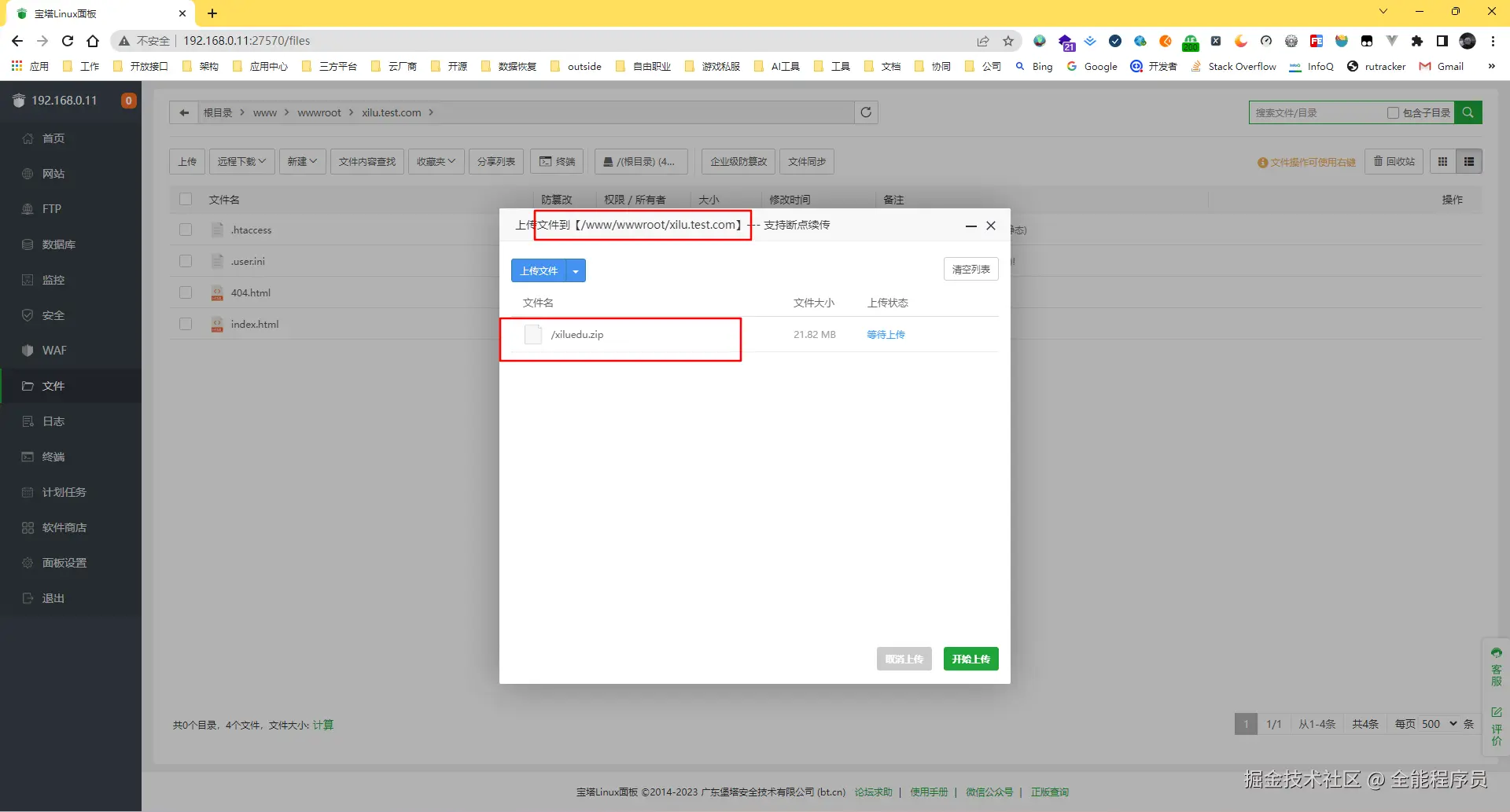 3、上传西路压缩文件