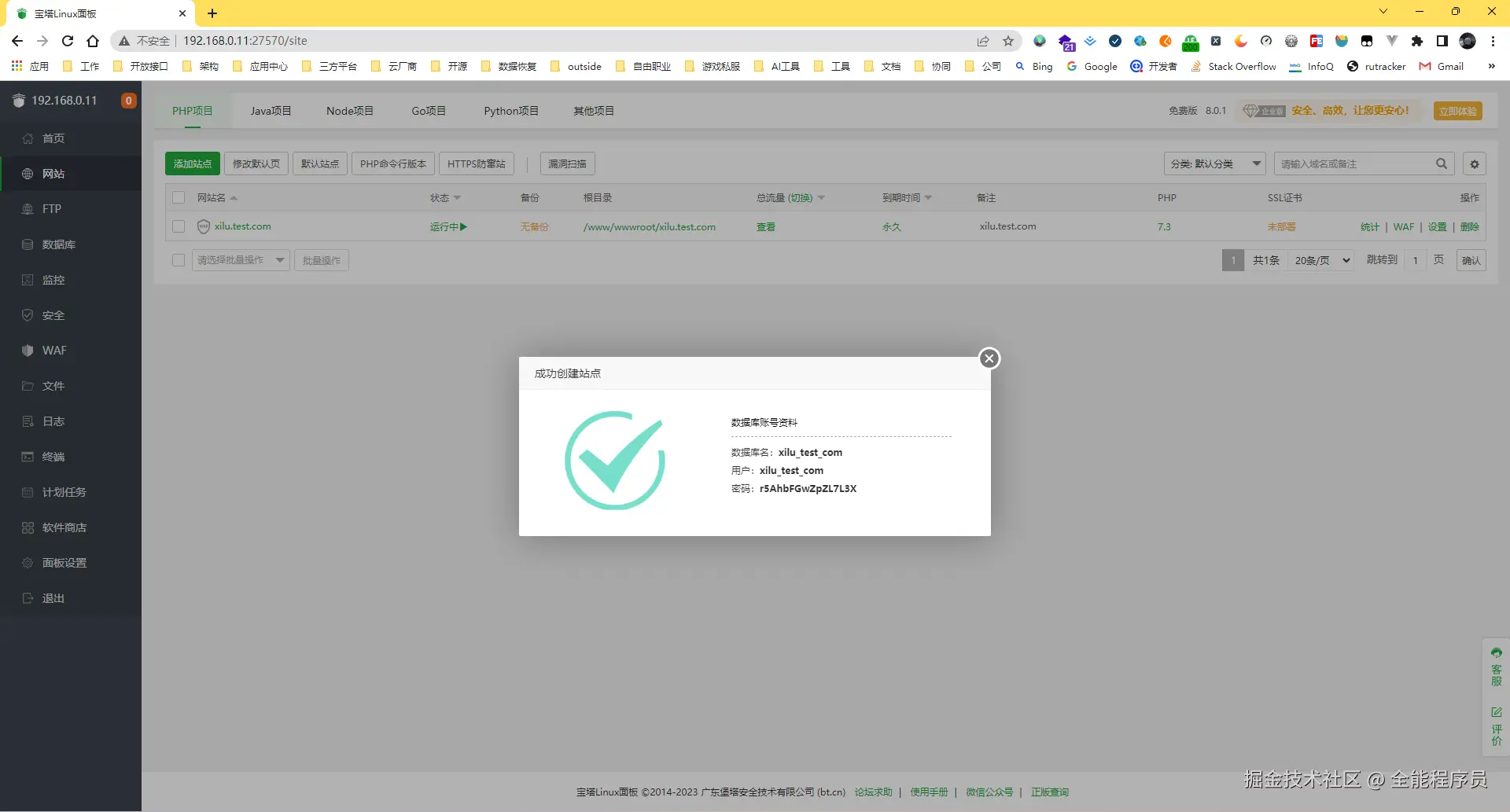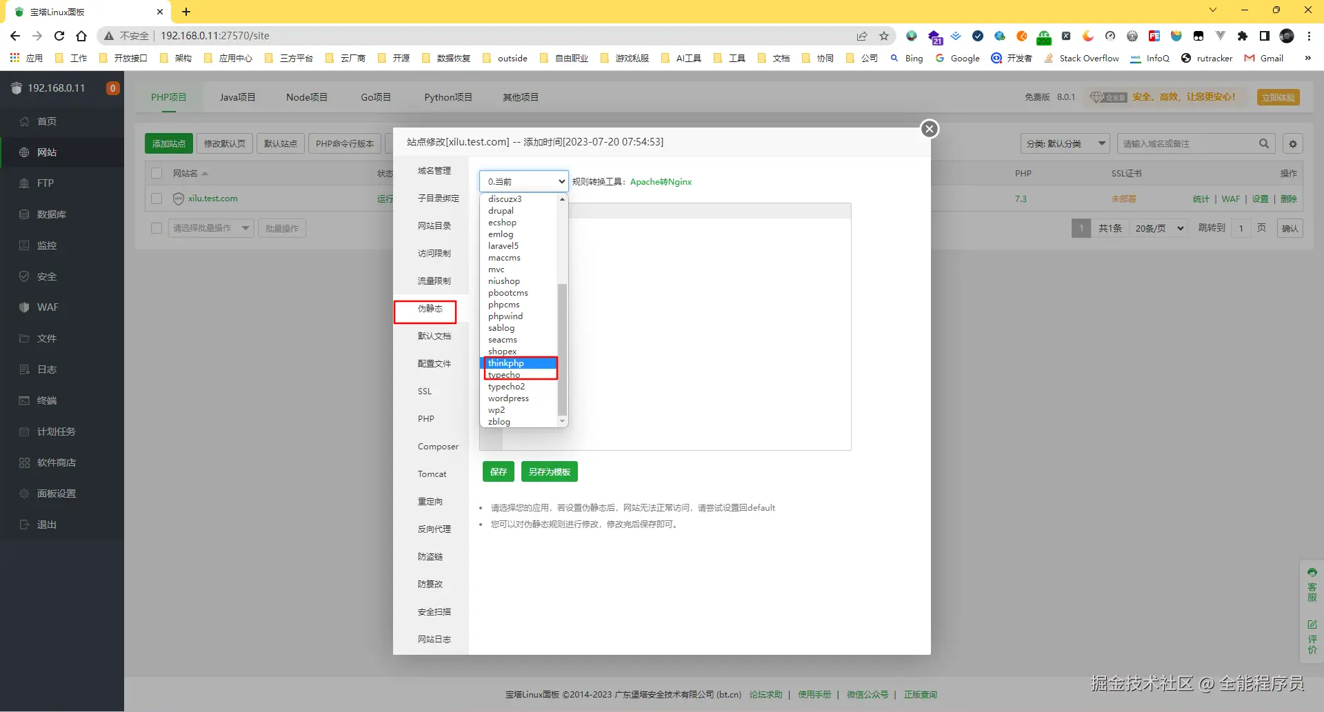 在宝塔中创建站点