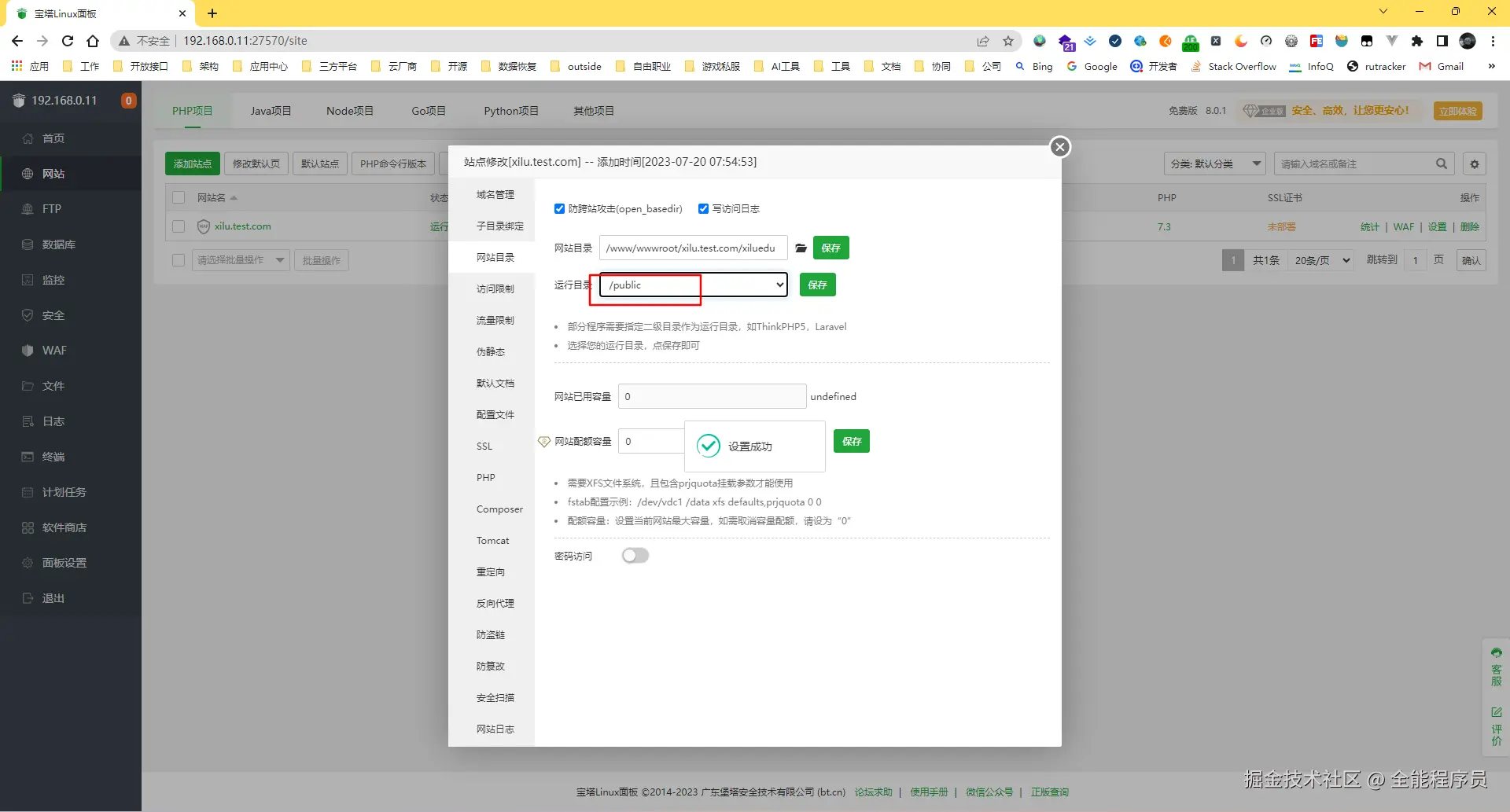 点击保存,然后才可以选择运行目录为public