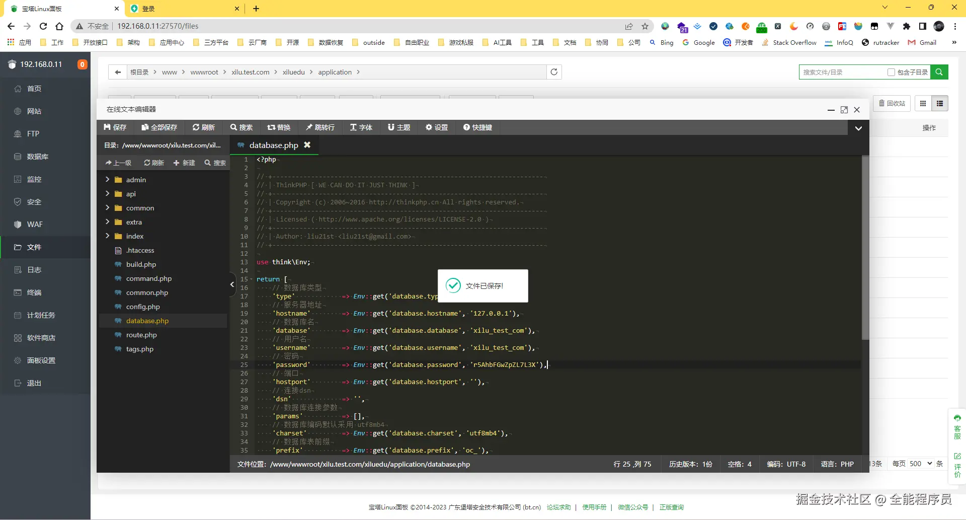 完整的后台访问地址为 http://192.168.0.11/ekVtjEyhxl.php/index/login