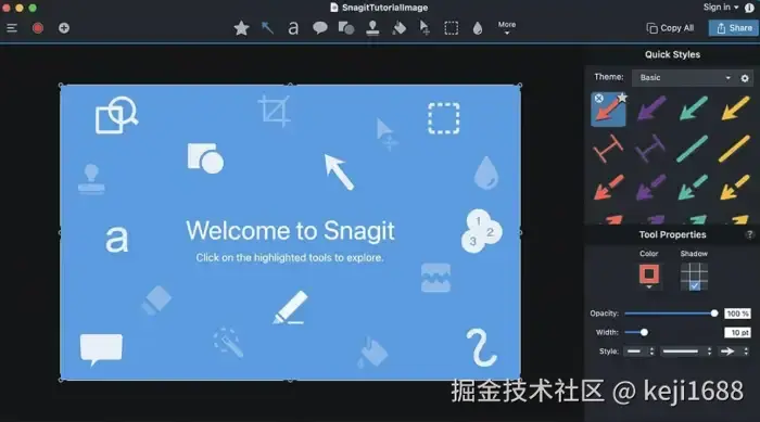 Snagit是一款强大而易于使用的屏幕捕捉和录屏软件,适用于Windows和Mac电脑。它不仅能够录制高质量的屏幕视频,还支持屏幕截图、图像编辑等多种功能。