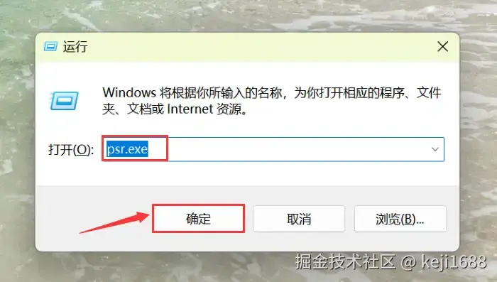 操作步骤:在电脑上按下【Win+R】打开运行页面,在输入框中输入【per.exe】并按下【确定】键或者回车键即可记录屏幕上的操作。