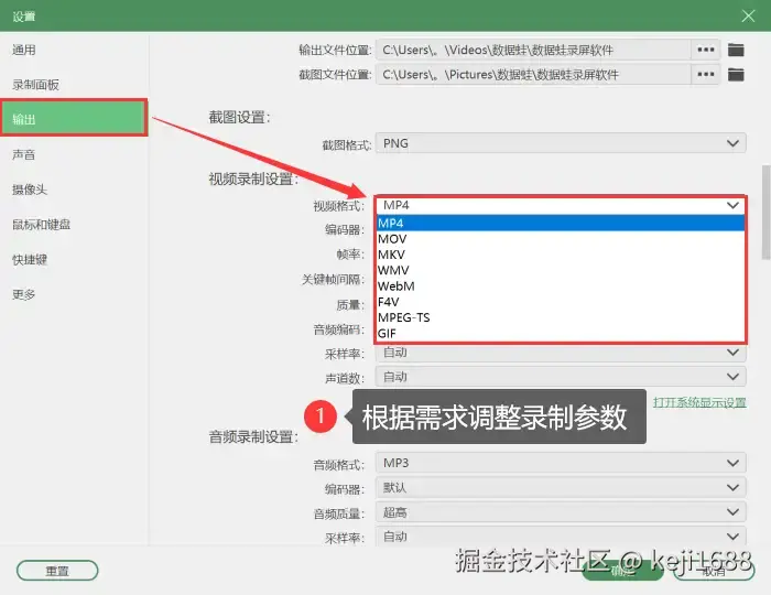 步骤2:想要录制出不同格式的视频,我们可以进入 【设置】 中根据自己的需求进行调整,同时也可以调整其他参数,让视频录制得更高效、更专业。