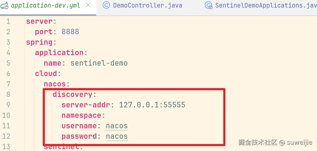 在项目中使用Nacos,只需要配置一个Nacos的地址,Nacos会自动同步给其他节点。