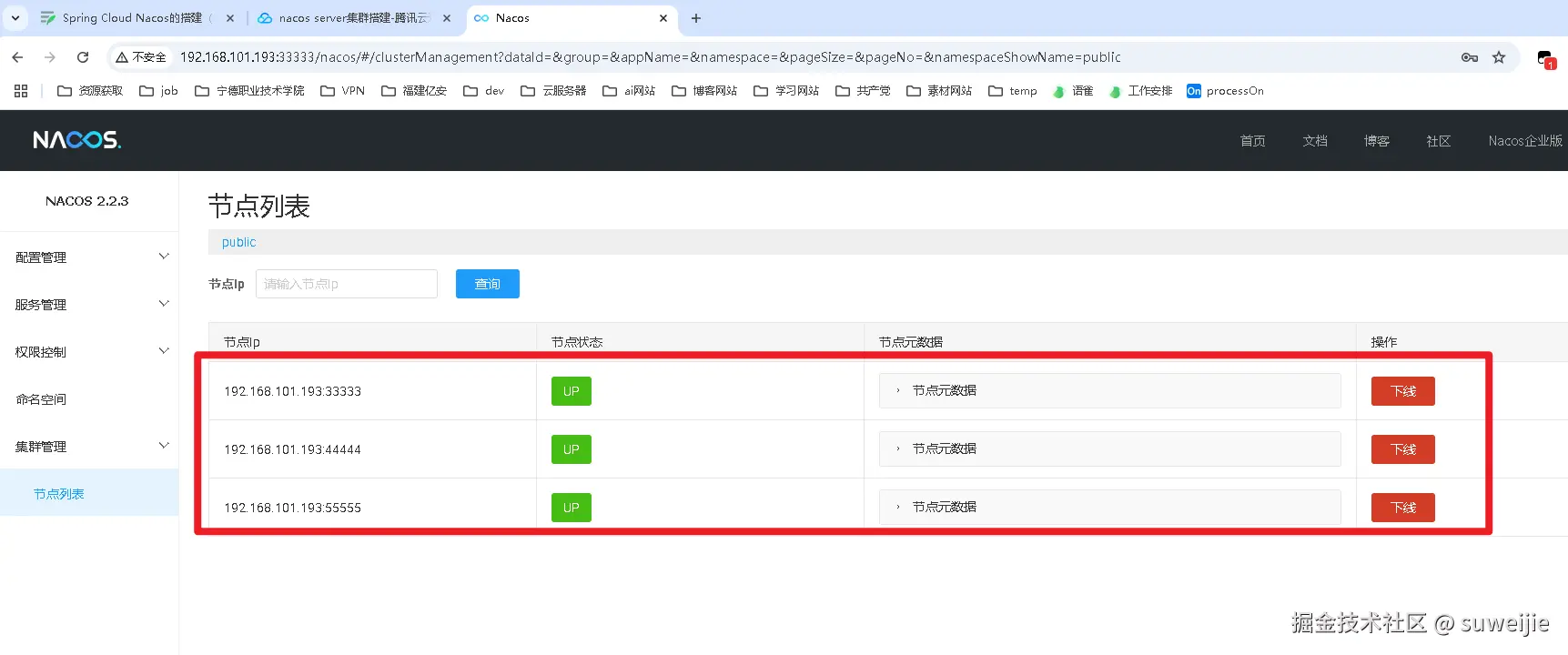 配置(填写好每个节点的IP:port) 我这边用三个节点来搭集群