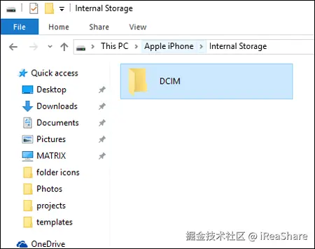 步骤1: 通过USB将您的iPhone连接到电脑,然后单击“此电脑”并访问您的iPhone。然后打开“ DCIM ”文件夹,选择需要的图片。