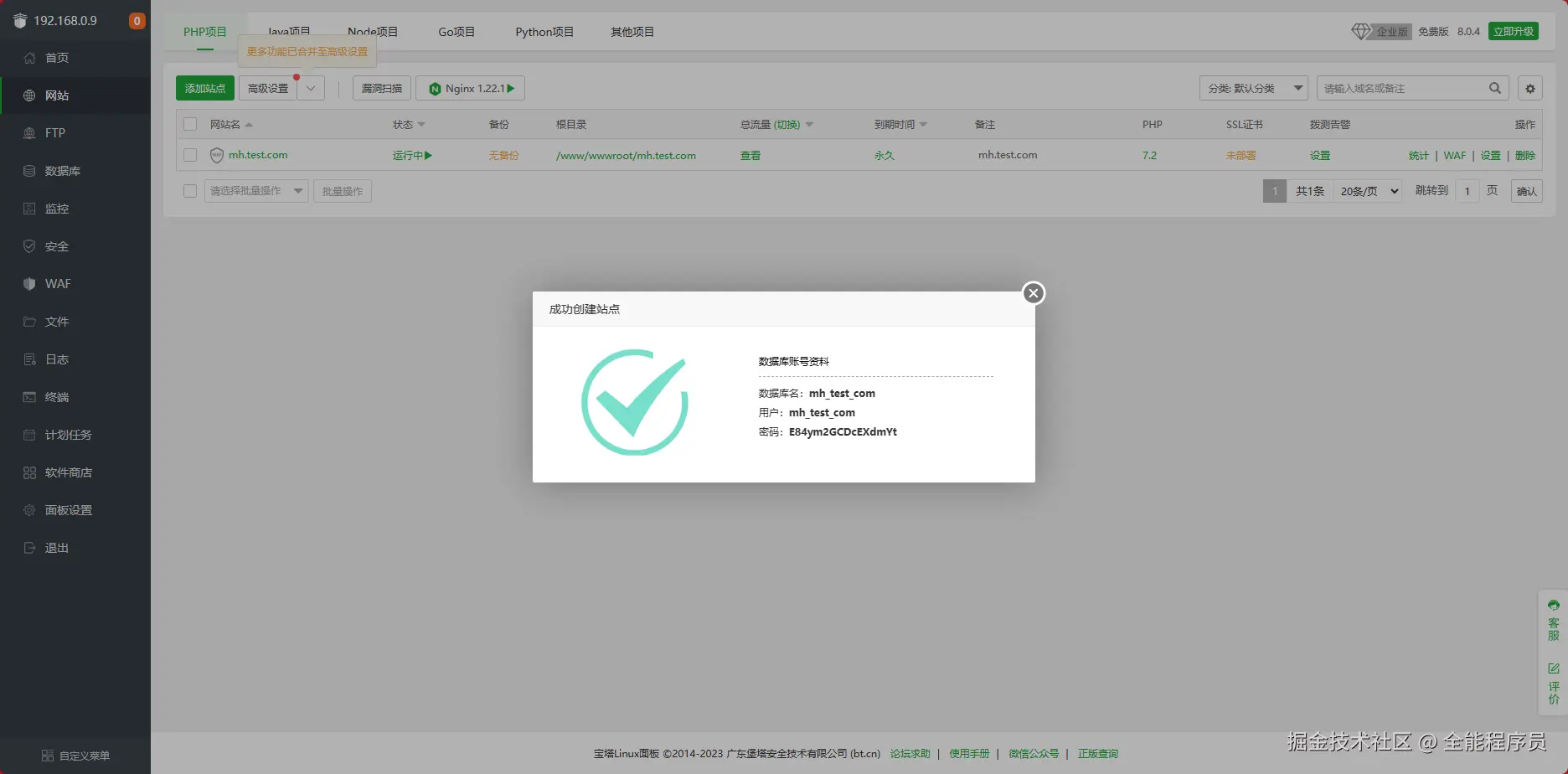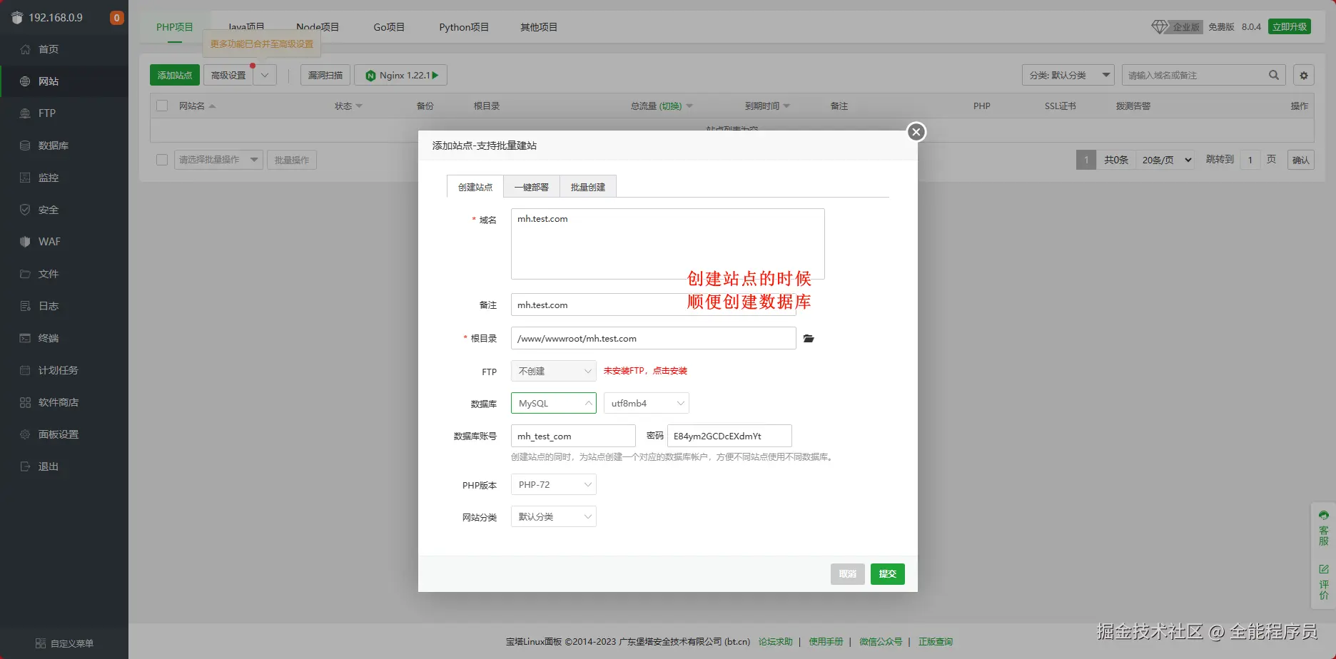 后台地址为你创建站点时候设置的域名,演示环境我没有域名,我直接用的ip