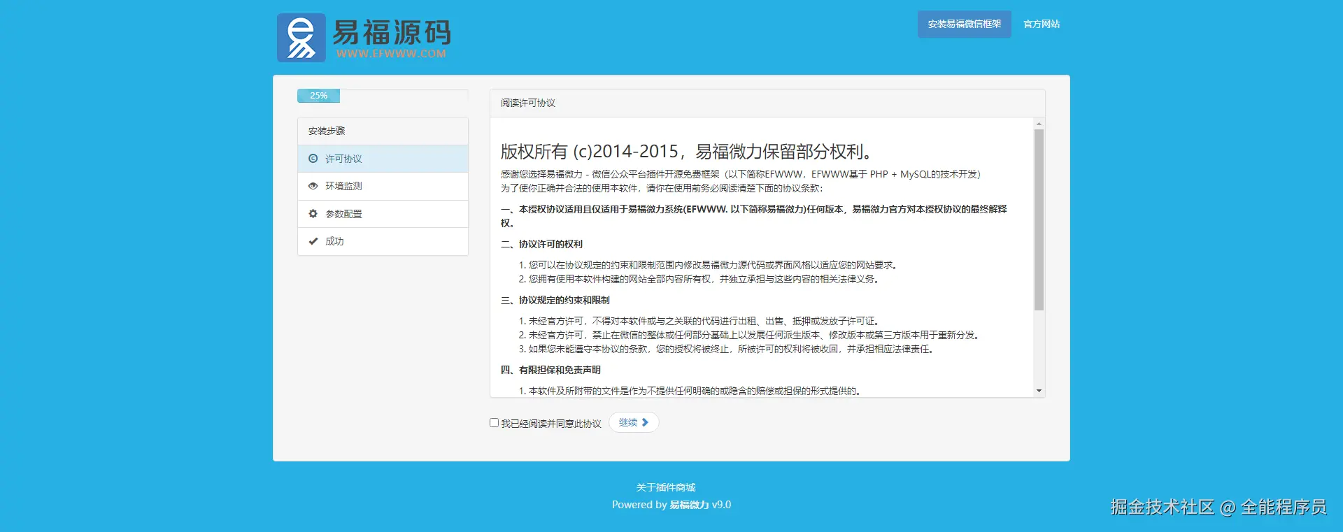 在线安装地址为http://你的域名/install.php