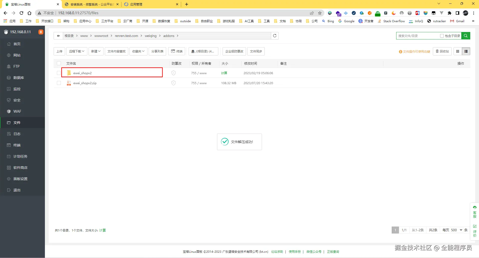 上传ewei_shopv2.zip到addons目录下,并解压。