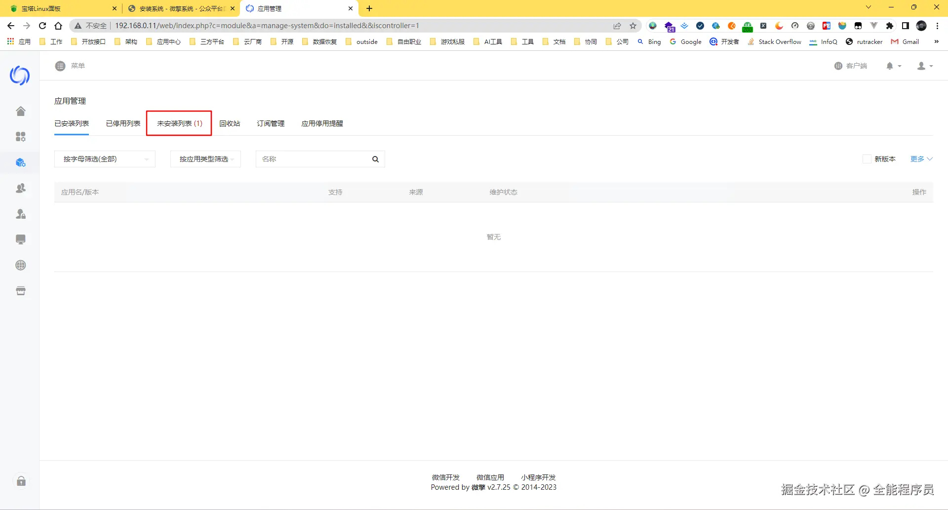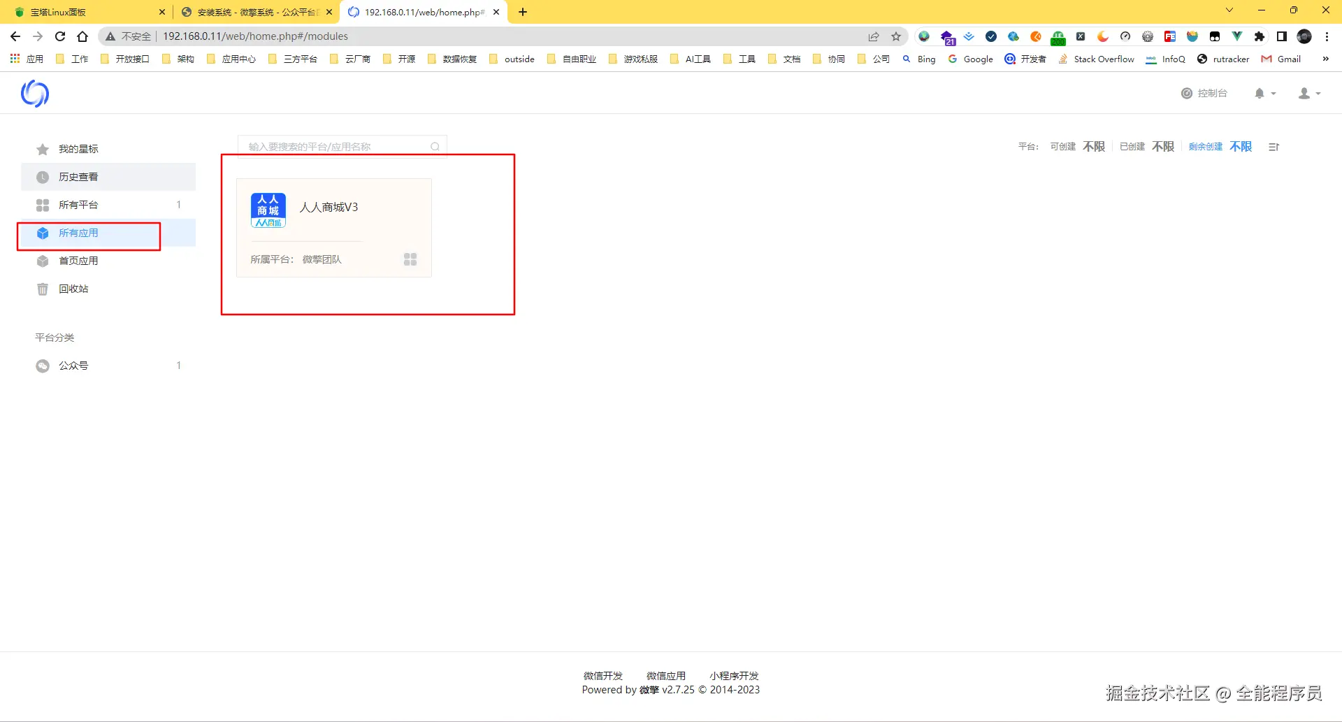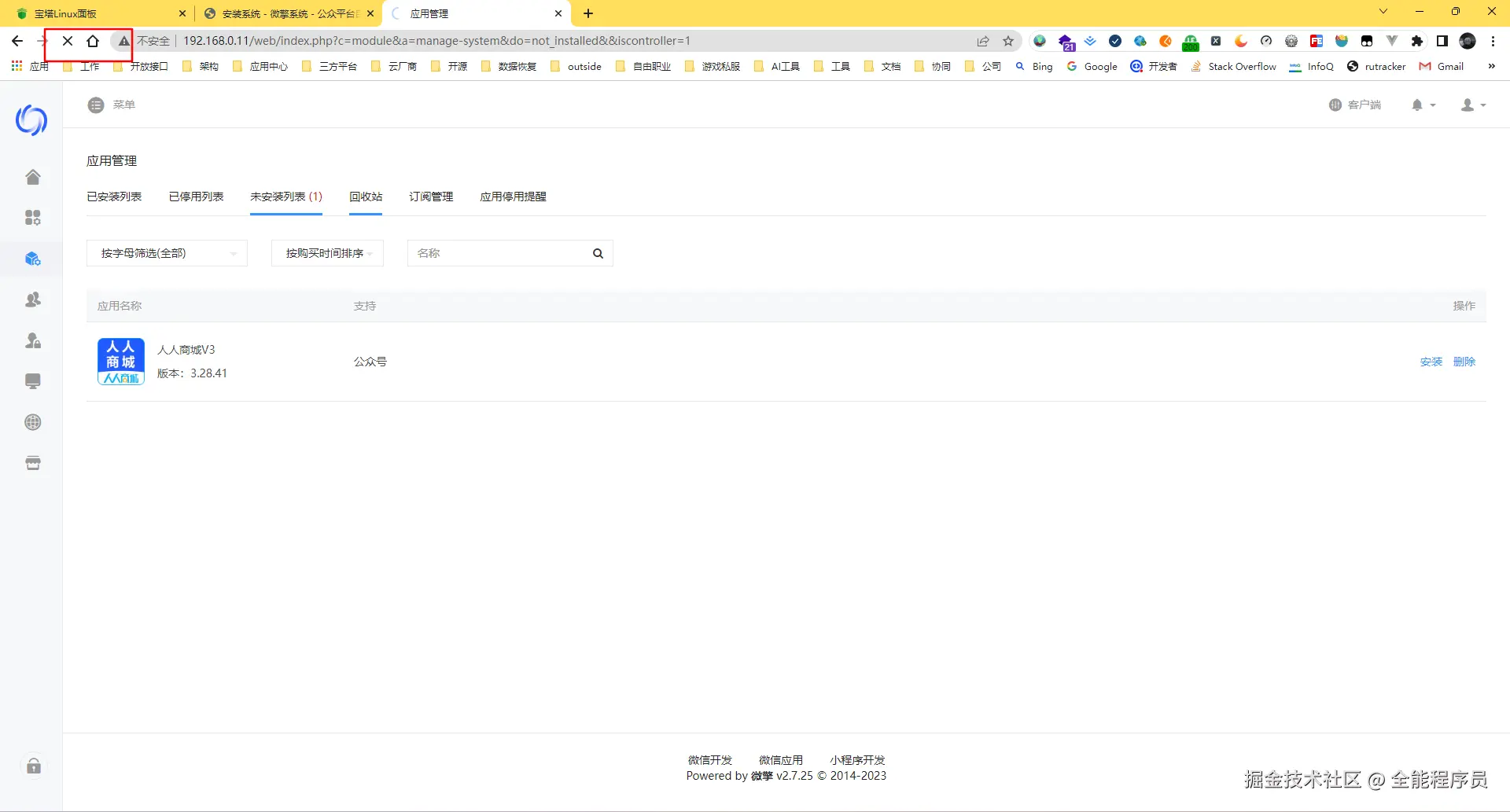 点击未安装列表,即可看到刚才导入的人人v3商城插件