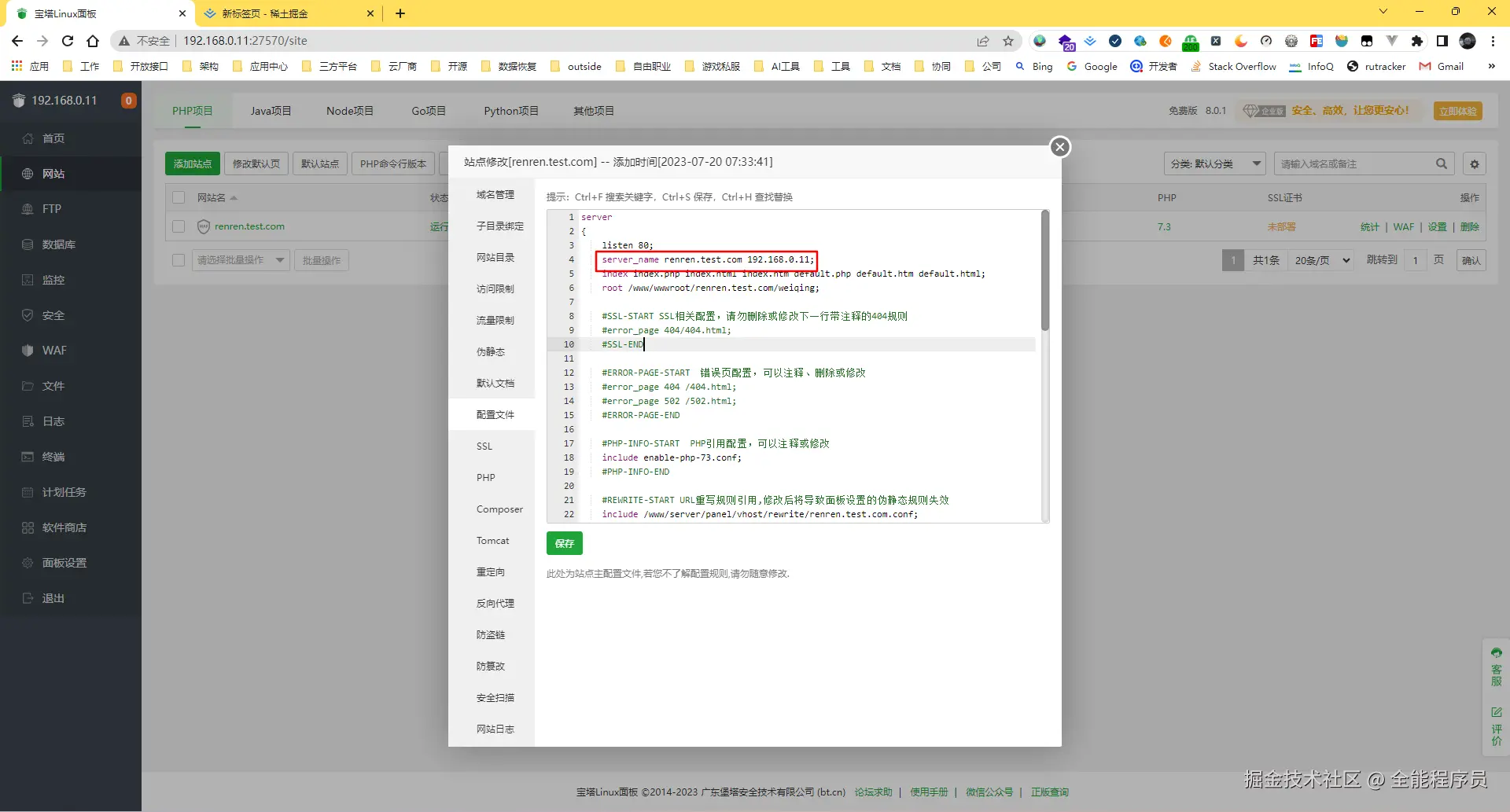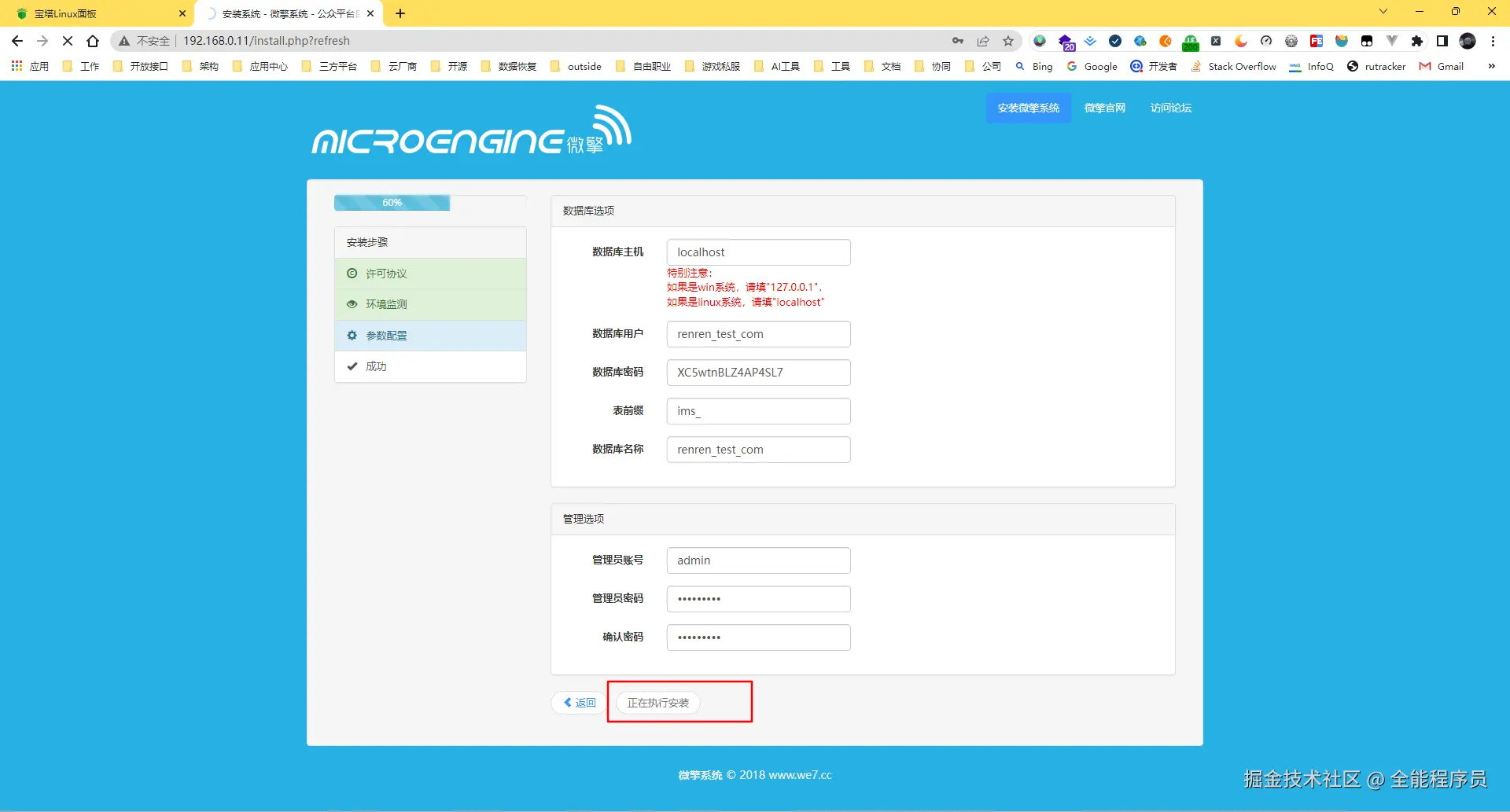 本地测试安装没有域名解析,所以添加了本地服务器的ip。