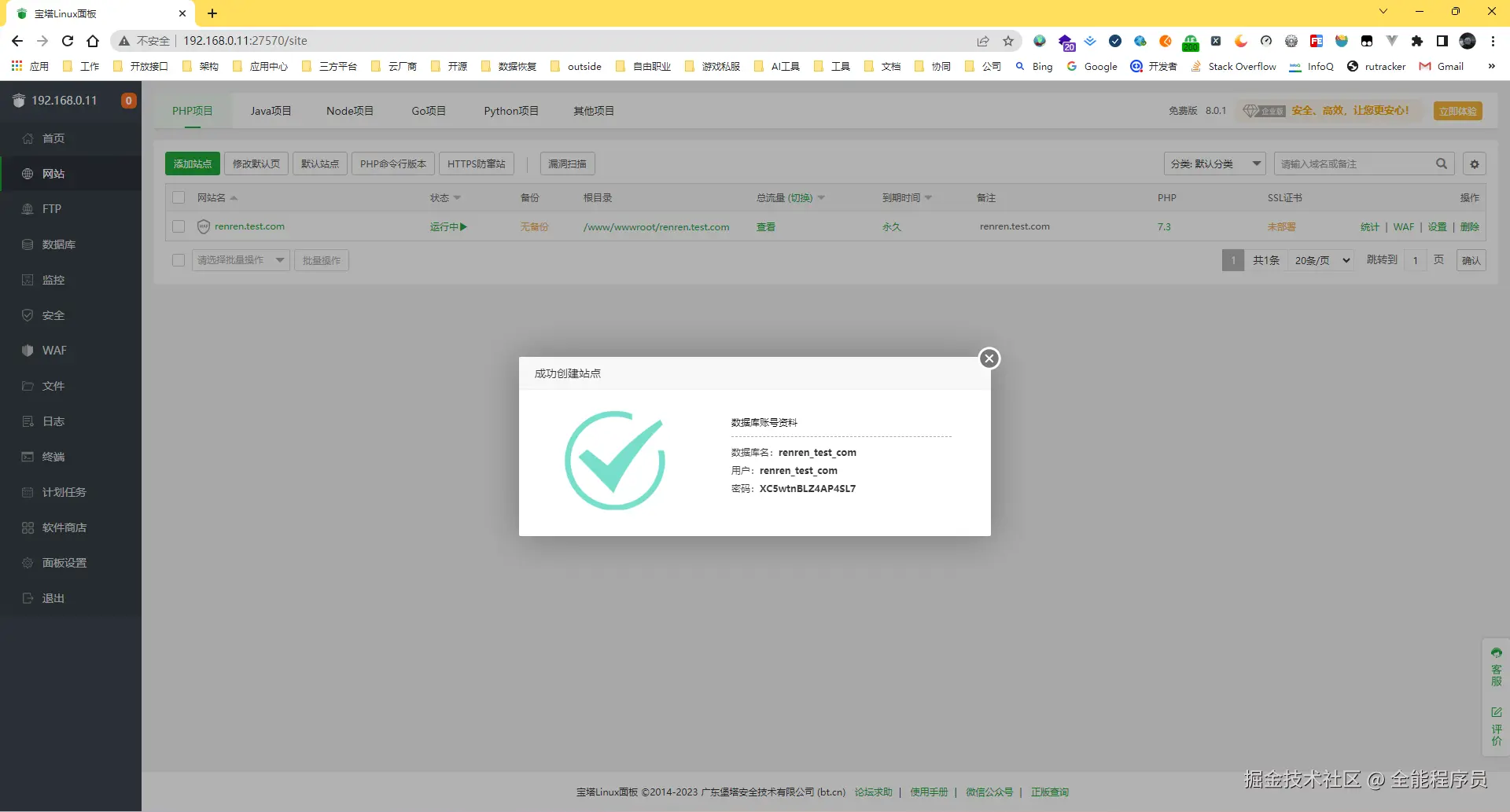 填写宝塔创建站点创建的数据库信息,或者直接去宝塔数据库菜单查询也行。