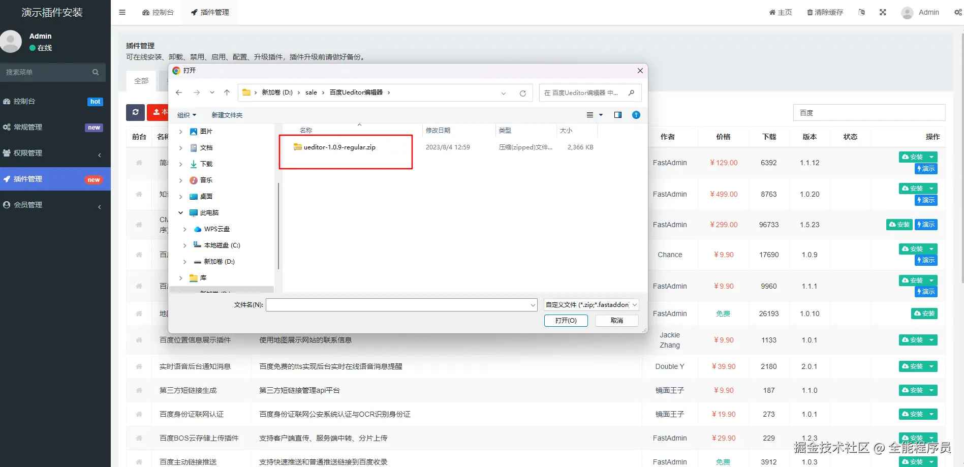 安装百度Ueditor编辑器插件前,需要先安装好fastadmin框架,如何安装fastadmin框架,请浏览该文档 juejin.cn/post/743121…