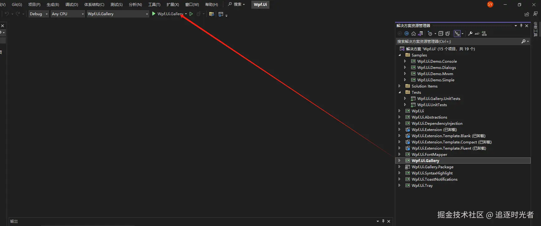 我们要查看WPF UI所有控件的演示效果,我们只需要设置Wpf.Ui.Gallery为启动项目运行即可。