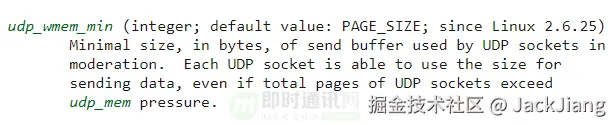 linux手册中有设置 UDP 发送缓冲区相关属性,也明确提到了send buffer的概念: