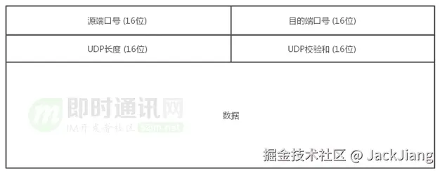 - 4) 校验值:16bits,错误检查码,基于算法,计算此 UDP 数据包是否损坏。
