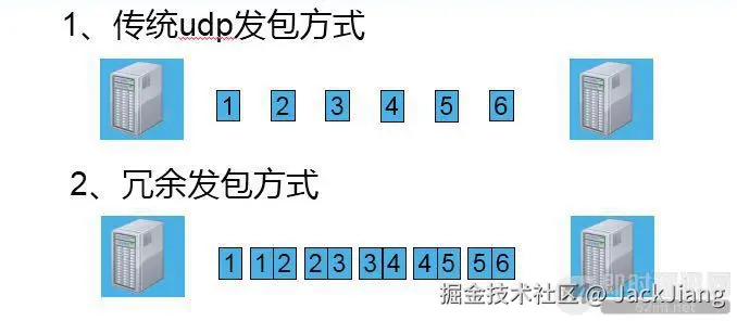 2) 弱网环境传输问题:在一些 Wi-Fi 或者 3G/4G 移动网下,需要做低延迟可靠通信,如果用 TCP 通信延迟可能会非常大,这会影响用户体验。例如:实时的操作类网游通信、语音对话、多方白板书写等,这些场景可以采用特殊的 RUDP 方式来解决这类问题;(弱网传输UDP延长会低很多)