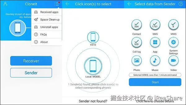 CLONEit 是另一个流行的应用程序,它简化了从华为到小米传输数据的过程。凭借其直观的界面和强大的功能,CLONEit 允许用户快速安全地传输联系人、消息、应用程序和其他数据类型,使其成为那些寻求无忧传输体验的人的绝佳选择。