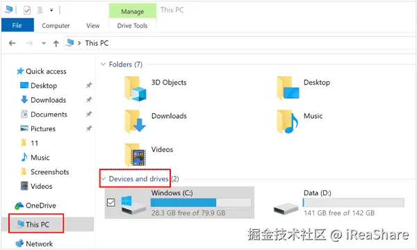 步骤2: 选择“此电脑”并双击华为设备,然后导航到您要发送的文件。