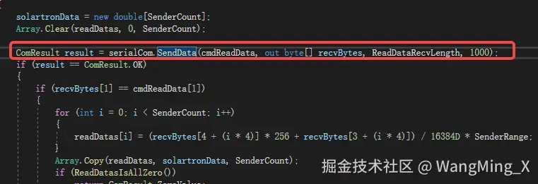 给仪器发送字符串形式的电压数据获取指令,仪器返回字符串形式的数据并以“\r\n”为结束符。可以调用串口通讯工具类中重载的SendData函数
