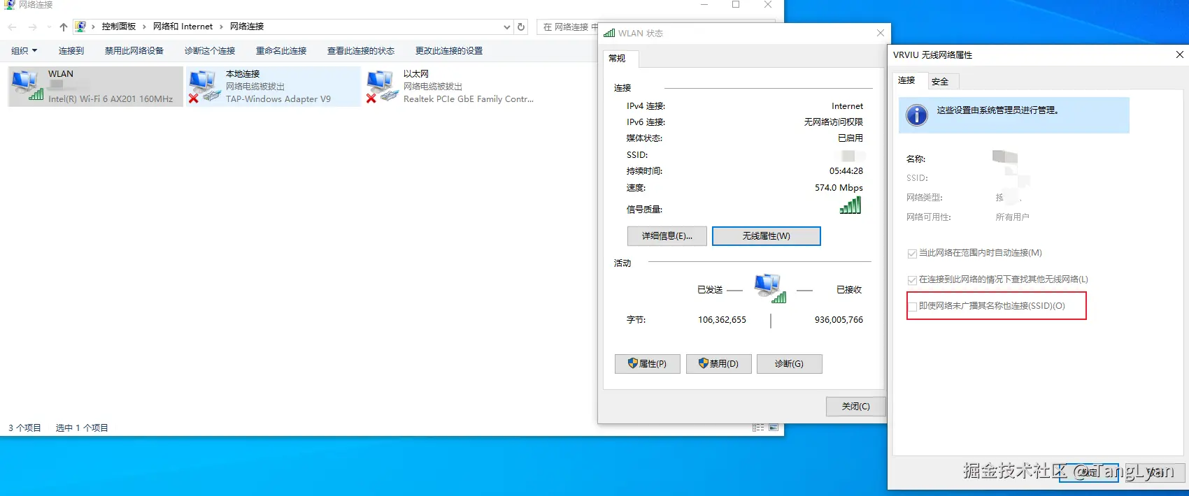 - 勾选“即使网络未广播也能连接(SSID)”;