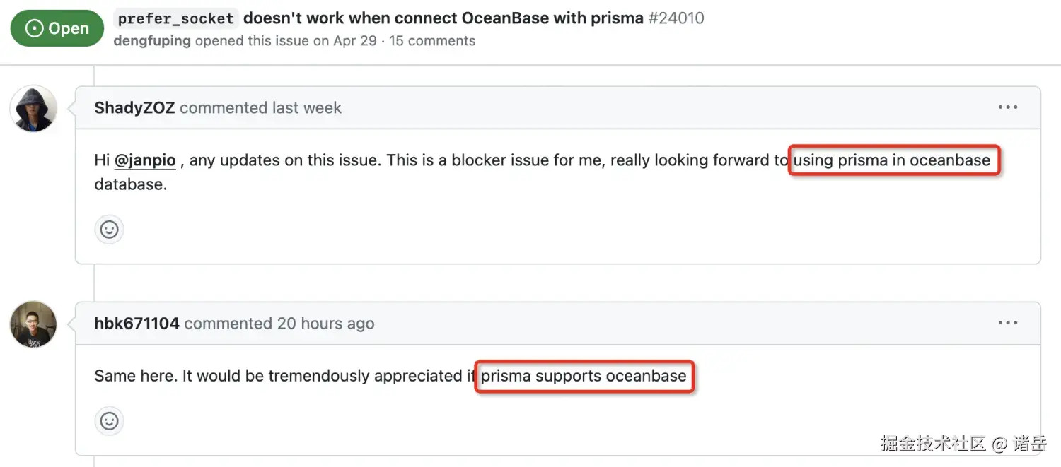 - 随着包括 OceanBase 和 TDSQL 在内越来越多的用户反馈,亟需解决 Prisma