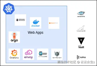 我们的旅程从一个简单的 Web 应用程序开始,它在一个带有NoSQL 数据库后端的 Kubernetes 集群中运行。