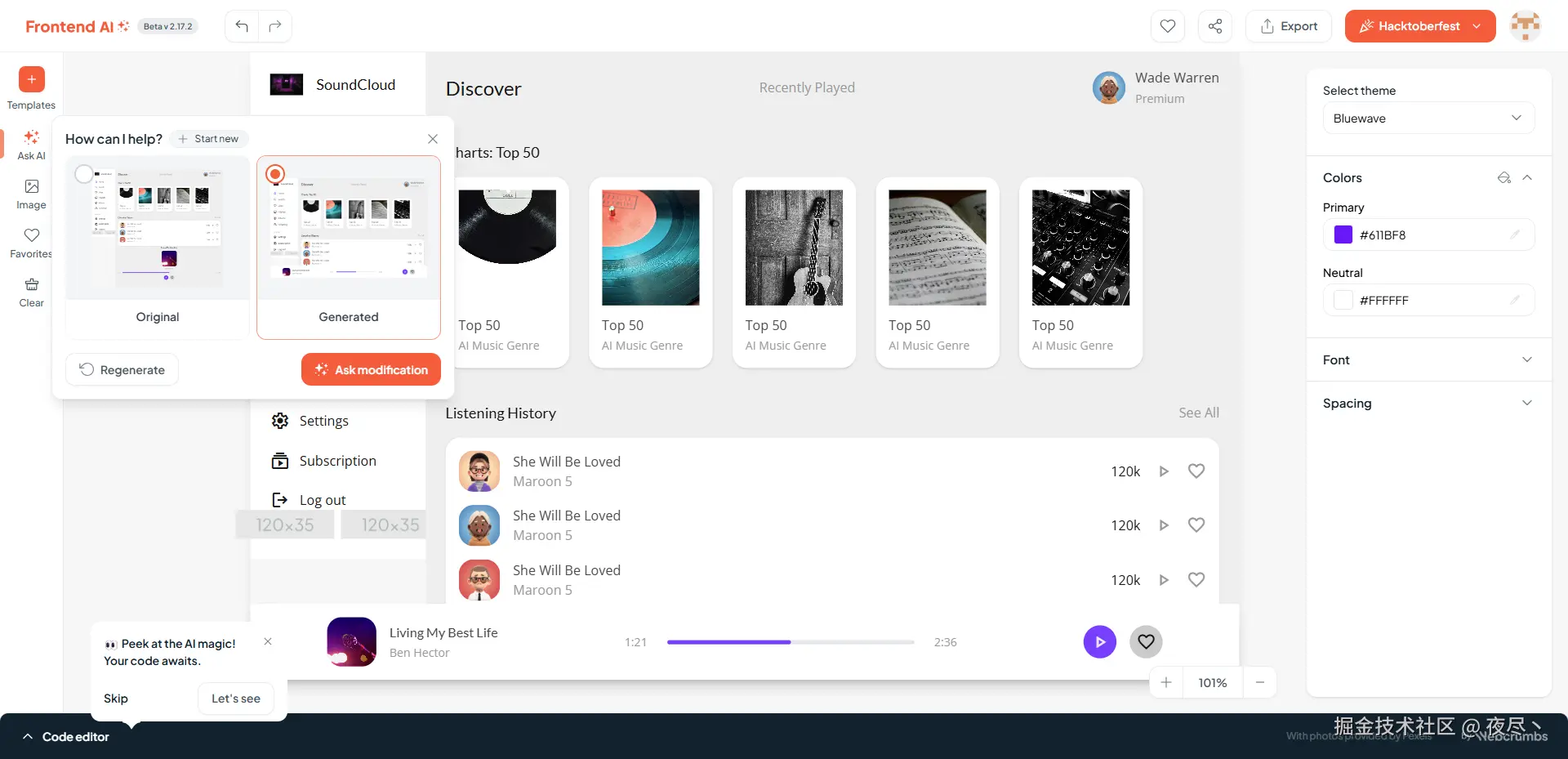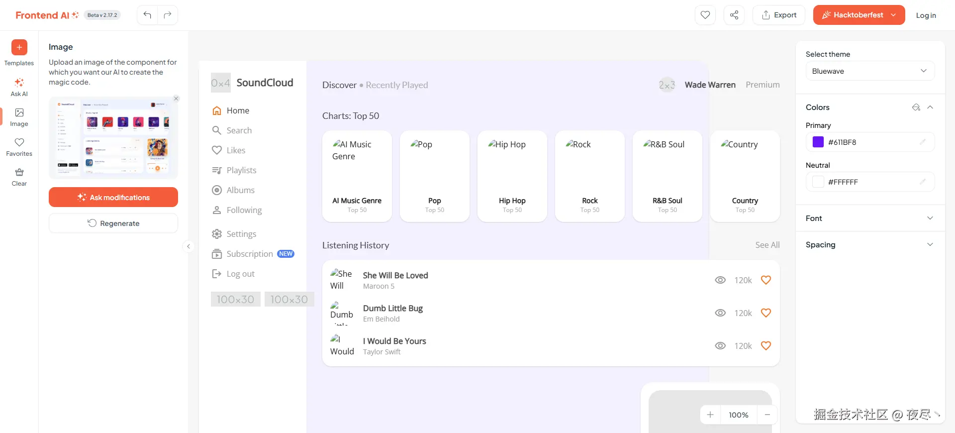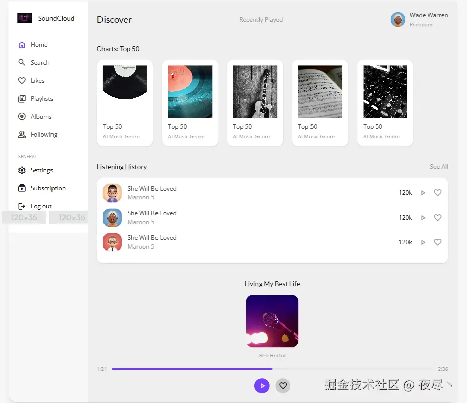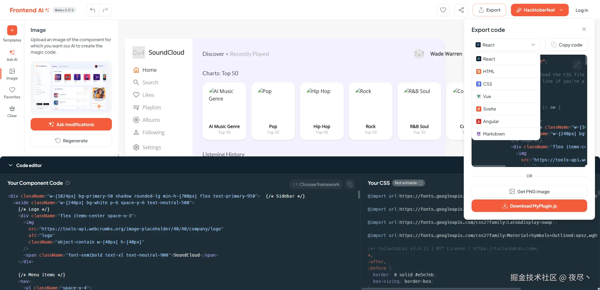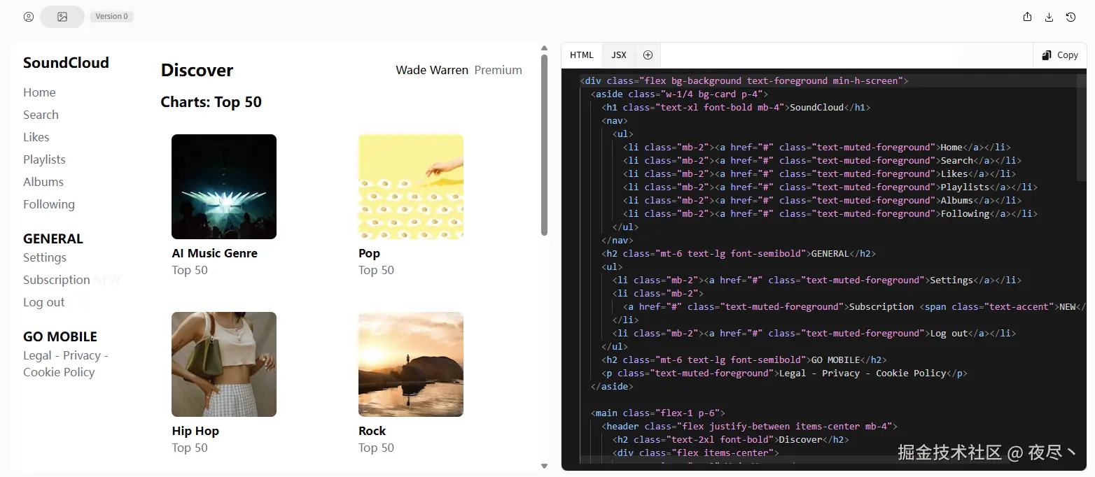 结果上来看个人认为这个还原度还是比较一般的,很难将设计图的细节完全表现出来,不过确实能快速生成代码,可以用作结构参考甚至直接拿 HTML 部分的结构来用,但样式肯定是要调整的。