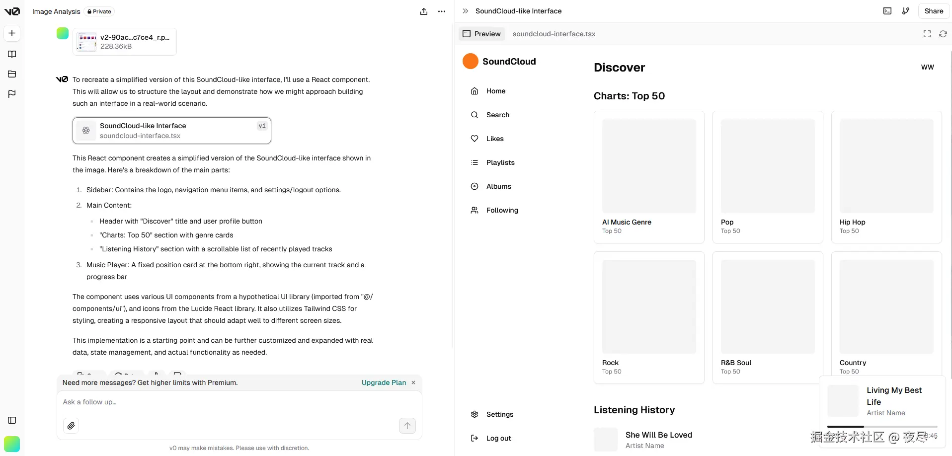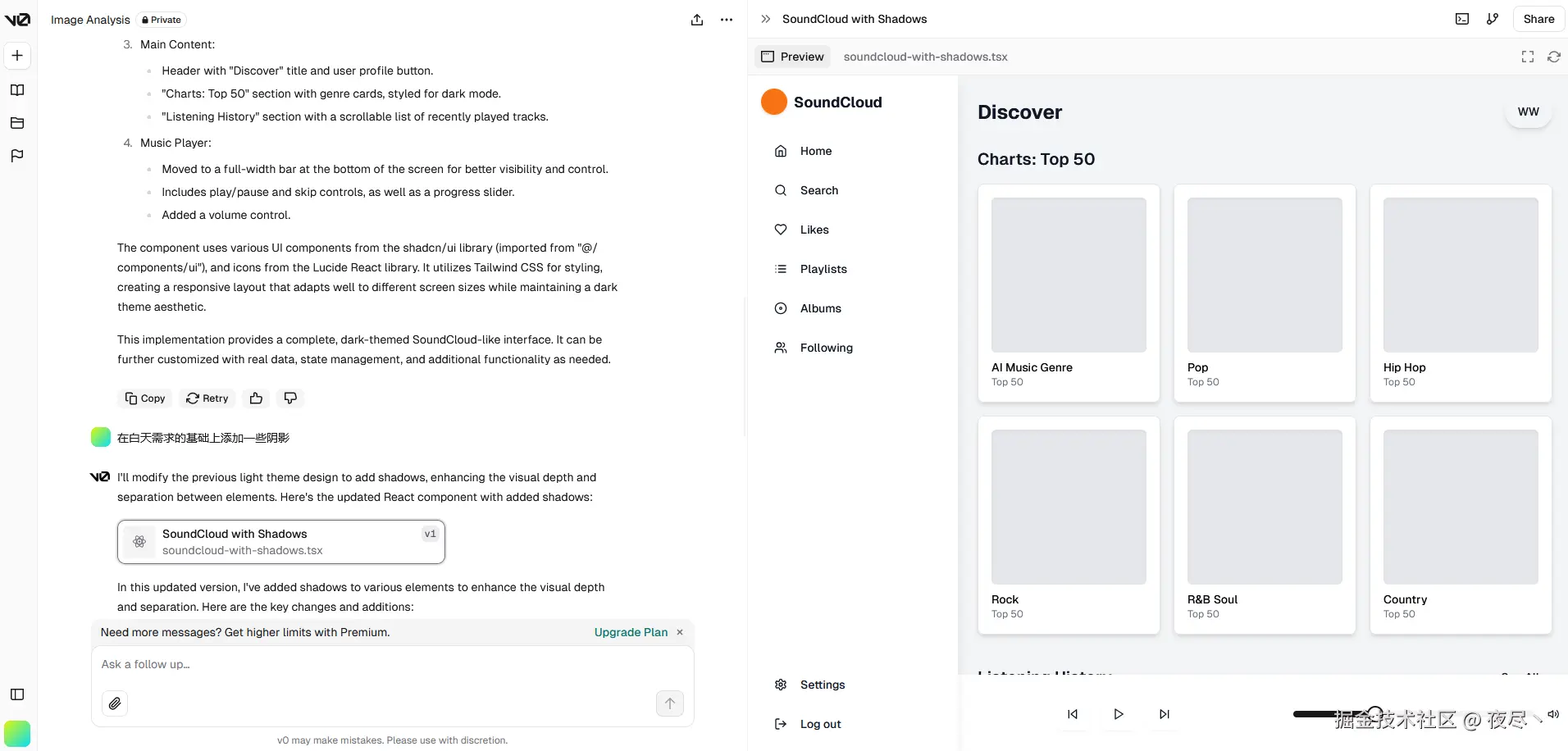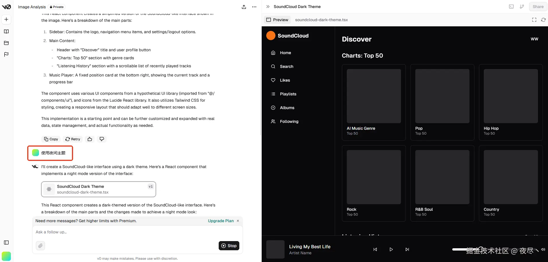 抛开代码的优劣,可以看到 AI 生成网页的前景还是有的,比如集成在 IDE 中的插件,可以读取当前项目的代码风格进行生成,也可以做到如上几个项目的效果时,可以生成更符合项目的风格的代码,也更方便操作选取需要重新生成的部分,这一点在 AI 绘画部分也有用到。另一方面来说,像 v0 这种产品作为快速生成原型用于验证设计的工具已经足够了。