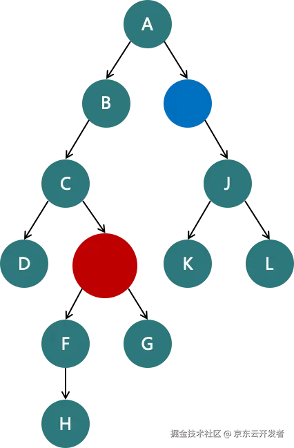 为蓝色的节点添加className I,为红色的节点添加className E,那么需要要被更新的节点就有 F G H I J