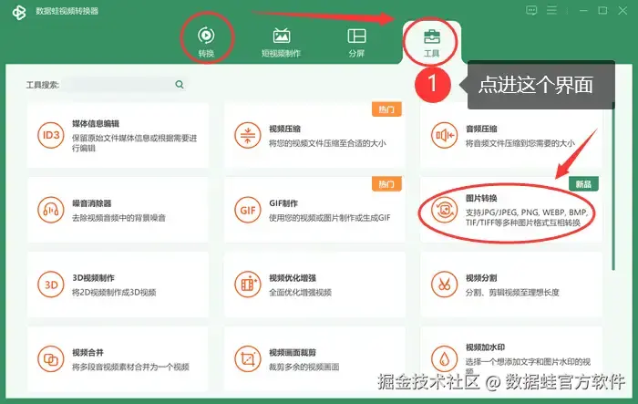 步骤1: 进入网站后,在软件的主界面找到并点击 【工具】 选项。在工具界面中,选择 【图片转换】 功能。