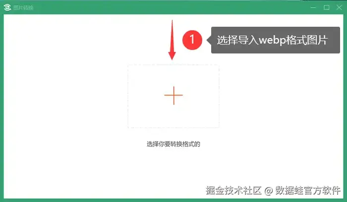 步骤2: 在图片转换界面,点击 【+】 按钮。在弹出的文件选择对话框中,找到并选择您想要转换的webp格式图片,把文件添加到软件中。