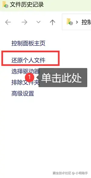 在Windows桌面下方的搜索栏中输入“控制面板”,在“控制面板”中点击“文件历史记录”。再点击页面左侧的“还原个人文件”。最后在弹窗选择你需要恢复的excel文件,最后点击“还原”。